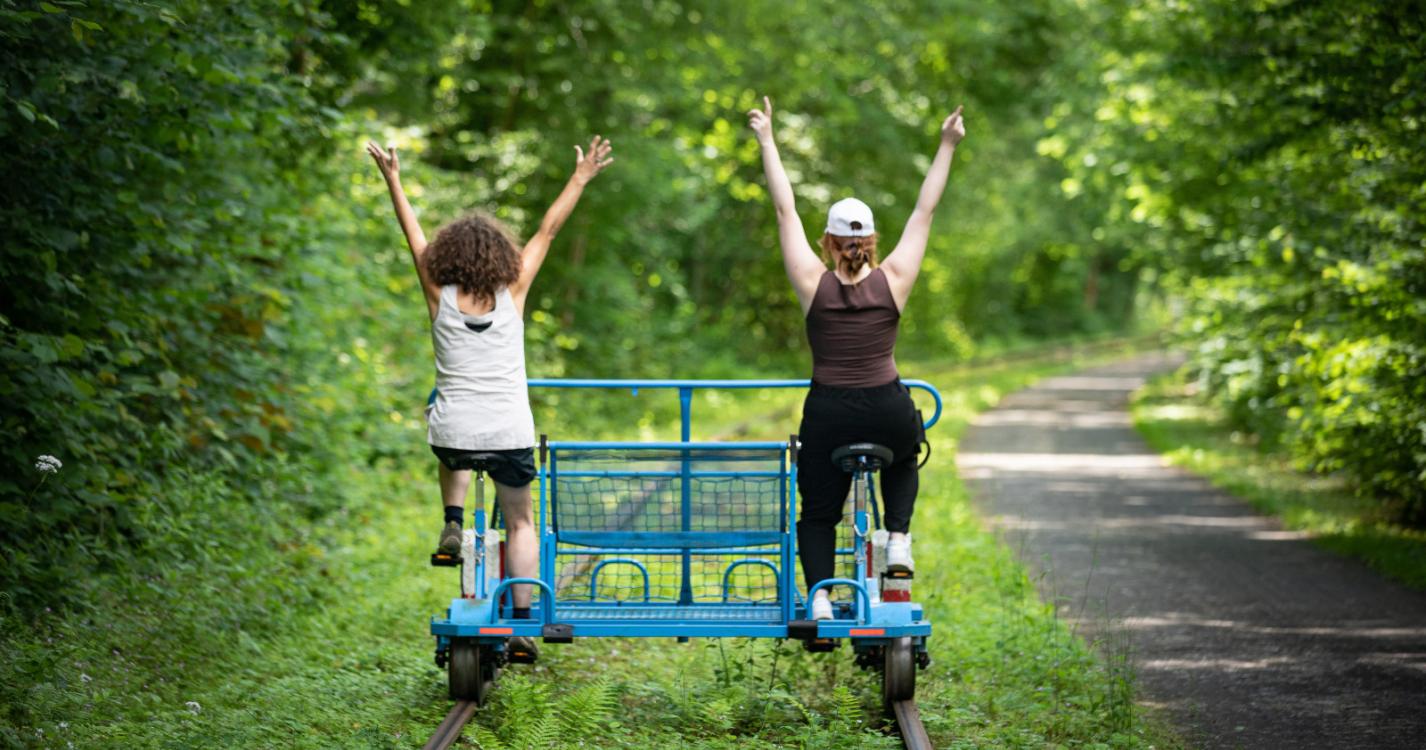 Ça vous dit, une journée à explorer la région en draisine ? Cette petite voiturette que vous actionnez en pédalant, ne circule que sur d’anciennes voies ferrées. Un moyen original et amusant de passer du temps en famille ou entre amis, tout en découvrant le patrimoine de la Molignée.