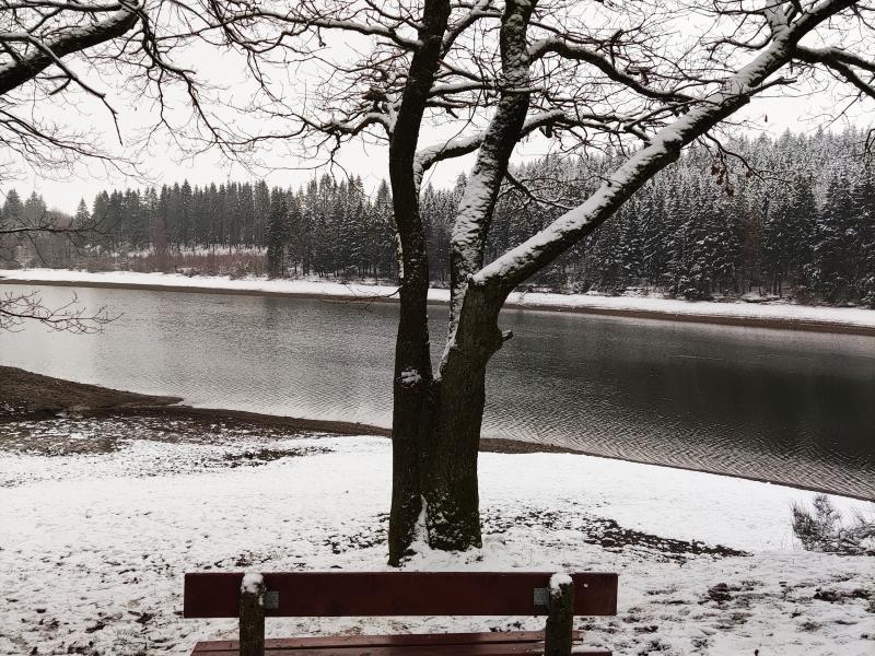 Grâce à son habit hivernal, le lac est vraiment magnifique et porte vraiment bien son nom de « lac miroir ». ❄️?