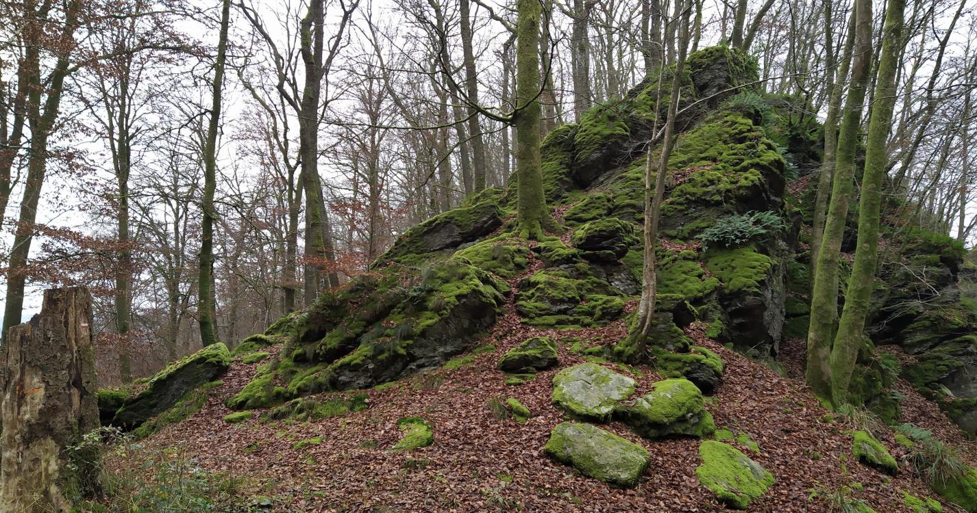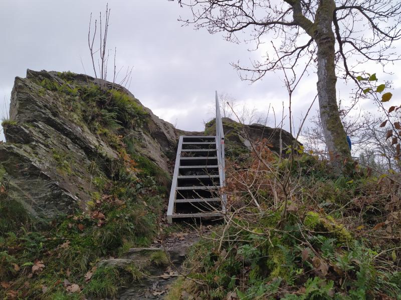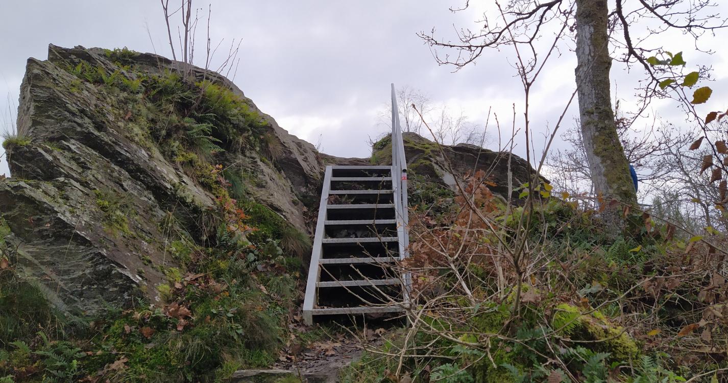Un sentier escarpé vous emmène au sommet des crêtes de Frahan avec une vaste vue sur les environs. Les impressionnantes masses rocheuses se succèdent, certaines devant être franchies par une courte échelle.
