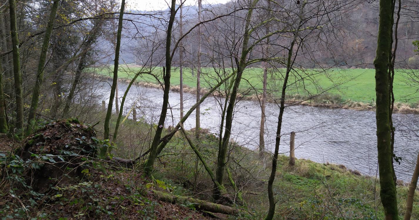La randonnée revient au village en passant par les anciennes plantations de tabac le long de la Semois.