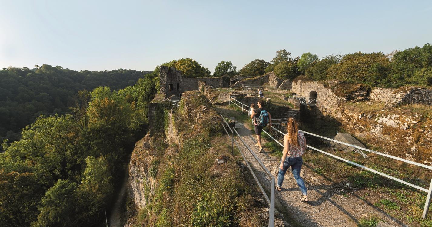Pour parvenir à ce château fort, niché au sommet d’un éperon rocheux qui s’élève au-dessus de la vallée de l’Ourthe, enfilez vos chaussures de marche. On comprend facilement pourquoi ce lieu a servi de refuge naturel aux habitants de la région et hôtes de passage pendant des siècles. Un site d’exception, avec une vue imprenable sur la vallée, ce qui explique pourquoi il fut choisi pour y dresser un fort. Fort qui finit par être détruit sur ordre de Charles Quint, en 1521 et dont vous pouvez visiter les ruines. Prêt à découvrir ce morceau d’histoire situé à Vieuxville-Ferrières? Muni de votre audioguide ou en visite accompagnée, vous partirez à la rencontre des mystères du Fort de Logne…