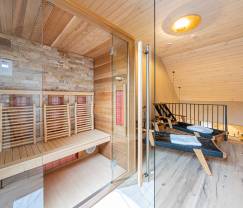La villa est modernement meublée et dispose d'un espace de détente et d'une salle de jeux, idéale pour des soirées conviviales entre amis ou en famille. La terrasse privée est l'endroit parfait pour profiter d'un barbecue estival ou simplement pour se détendre avec un bon livre. Et après une longue journée d'aventure, vous pouvez vous détendre dans le jacuzzi ou le sauna.