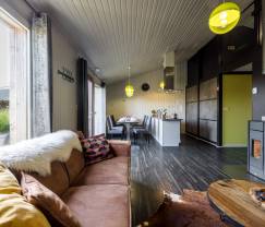 Idéal pour 6 personnes, le gîte propose 2 chambres agréables et une salle de bains moderne très bien équipée. En effet, elle inclut un sauna, qui deviendra à n’en pas douter votre nouveau rituel du soir. Les différentes pièces bénéficient toutes d’une décoration particulièrement soignée et personnalisée, créant ainsi des univers singuliers. Le coin salon d’inspiration très contemporaine vous séduira immédiatement. Son atmosphère cosy promet de belles soirées au coin du feu. À côté, l’espace salle à manger est lumineux grâce à sa grande baie vitrée. La cuisine est elle aussi très moderne, fonctionnelle et dispose d’un équipement complet. Tout sera donc réuni pour des vacances réussies, d’autant que l’extérieur tient également ses promesses. Vous profiterez de votre charmante terrasse avec barbecue tandis que les enfants trouveront un terrain de jeux paradisiaque dans le grand jardin, que vous partagez avec les autres chalets.