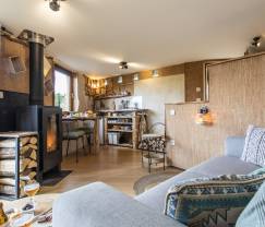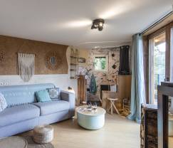 Ce gîte vous comblera par son style, sa situation paisible, sa conception, ses petits détails charmants. Les propriétaires ont réalisé eux-même l'aménagement intérieur de la cabane, avec des matériaux écologiques et des idées astucieuses.