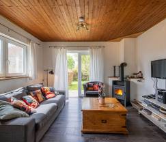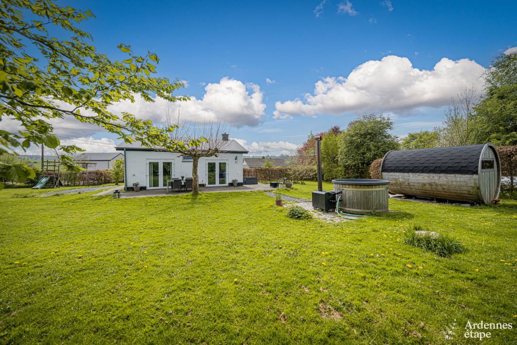 En plus d’un aménagement pratique et fonctionnel, la maison propose aussi un équipement destiné au bien-être pour des vacances placées sous le signe du repos et de la détente. Vous disposerez à l’extérieur d’un sauna et d’un bain nordique pour vous relaxer après une journée de randonnée. Le jardin est d’ailleurs un lieu où vous passerez sans doute du temps, particulièrement durant les beaux jours. En effet, vous y profiterez d’une jolie vue et d’un environnement champêtre, en plus de bénéficier de 2 terrasses avec leur mobilier de jardin. L’intérieur se révèle tout aussi ravissant avec une vaste pièce à vivre regroupant le coin salon et la cuisine tout équipée ouverte sur la salle à manger. Vous y passerez assurément d’agréables moments en famille autour d’un apéritif ou d’un bon repas. Enfin, vous disposerez dans cette maison de plain-pied de 2 chambres et d’une salle de bains.