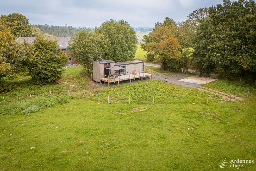 Vivez un séjour unique dans ce charmant tiny house pour 4 personnes, situé dans le pittoresque village de Léglise. Cette maison cosy de 30m² est idéale pour un couple à la recherche d'une escapade romantique ou une petite famille avec 2 enfants pouvant dormir dans la mezzanine conviviale. Ici, tout tourne autour du retour à l'essentiel, avec un minimum d'espace mais un confort maximal. N'attendez pas de télévision, d'écrans ou de wifi – ici, la déconnexion totale du monde numérique est au centre, pour que vous soyez en contact complet avec la nature.