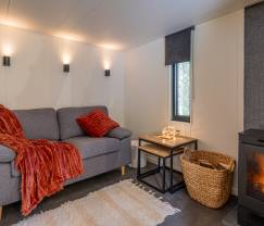 Le tiny house est intelligemment agencé avec une kitchenette compacte et un coin repas cosy. La salle de bain est équipée d'une grande douche à l'italienne, d'un lavabo, de toilettes et d'un sèche-cheveux. Le coin salon invite à des soirées conviviales près du poele à pellets, où vous pouvez vous détendre agréablement et profiter du calme. Il y a une confortable chambre double et un espace de couchage supplémentaire dans la mezzanine, parfait pour les enfants ou les adolescents.