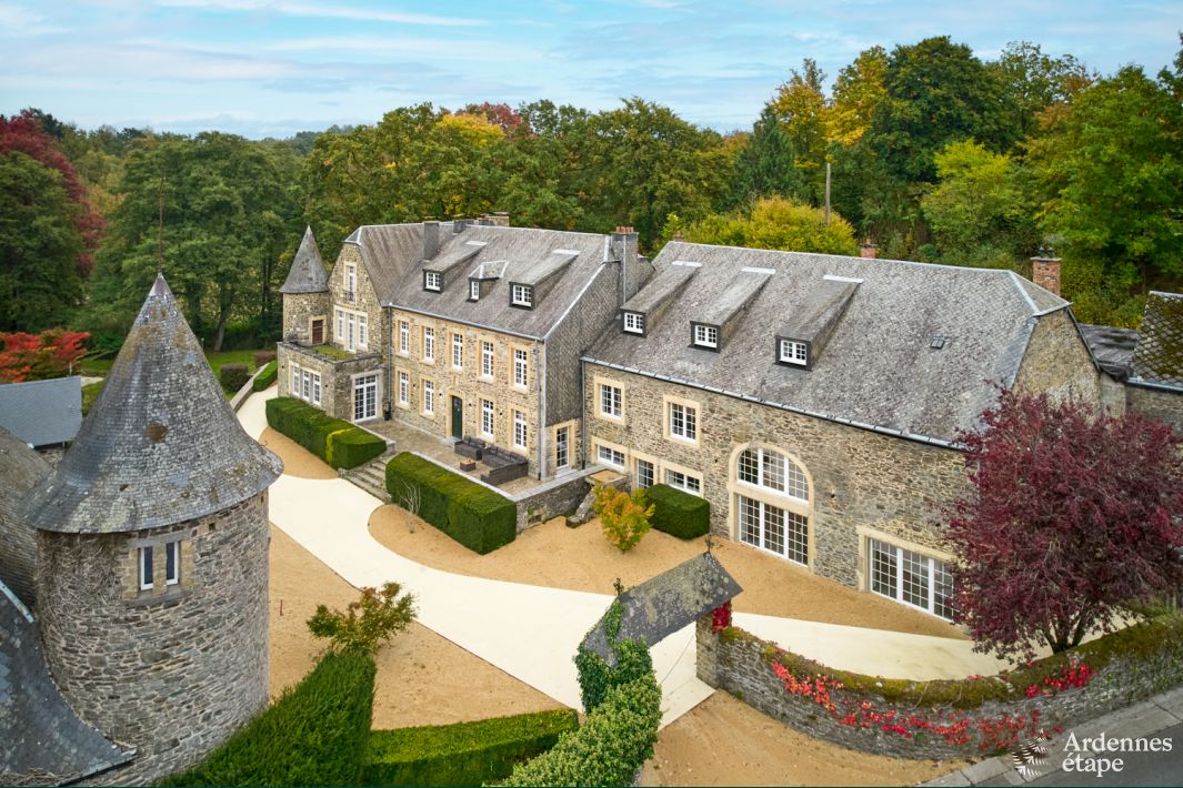 Bienvenue dans le majestueux château à Libin, un lieu où luxe et confort se rencontrent pour un séjour inoubliable. Le château a été entièrement rénové dans un style chic contemporain, et peut accueillir 40 personnes : idéal pour un public d'âge qui sait apprécier le charme et le caractère du lieu. Avec 20 chambres et 20 salles de bains, vous y vivrez un confort hôtelier que vous ne trouverez nulle part ailleurs.