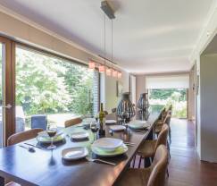 Impossible de ne pas tomber sous le charme de cette maison, nichée en pleine nature. Vous profiterez d’un grand jardin privé et trouverez un étang à 300 mètres de la maison. La grande terrasse vous permettra également de profiter de cet environnement d’exception à l’occasion d’une soirée barbecue par exemple. L’intérieur offre lui aussi son lot de réjouissances avec notamment un espace détente avec cabine infrarouge. Idéal pour un repos bien mérité après une journée de randonnée ! La maison propose un aménagement très fonctionnel avec 4 chambres confortables et 3 salles de bains. Au moment de réunir toute la famille, vous pourrez compter sur un espace de vie vaste et convivial. Le coin salon propose un univers très cosy avec de beaux canapés, un billard et un poêle à bois, et la salle à manger est à la fois spacieuse et très lumineuse grâce à ses grandes baies vitrées. Un peu plus loin, la cuisine ouverte offre tout l’équipement pour vous permettre de régaler votre famille à l’heure du repas. Notez enfin qu’un parking privé avec 3 emplacements est à votre disposition.
