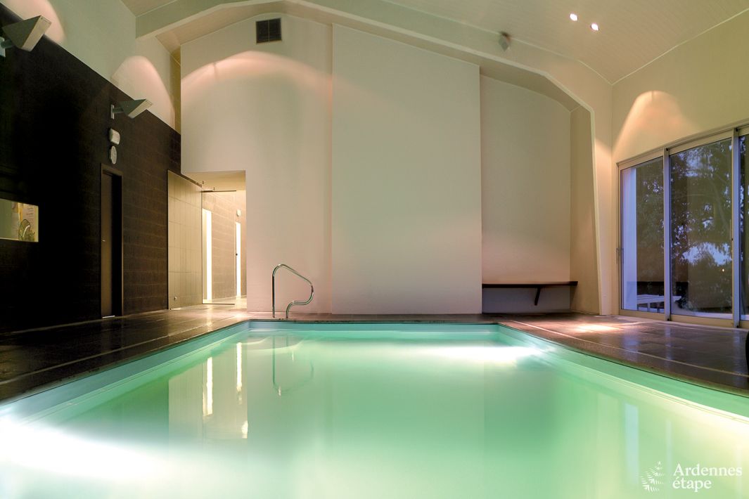 L'un des plus grands atouts de cette maison de vacances est la piscine couverte, chauffée à 32 degrés. Vous avez un accès exclusif à cette piscine et à l'espace spa étendu pendant votre séjour. Le spa comprend un hammam, un sauna, un jacuzzi, des banquettes infrarouges, un mur de sel, une douche multi-jets, une cascade et une salle de détente. Tout cela offre une expérience de bien-être unique où vous pouvez vous détendre complètement.