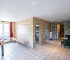 Vous serez immédiatement séduit par l’environnement champêtre qui entoure cette propriété. Un séjour au calme vous y attend et toute la famille trouvera de quoi s’occuper, se détendre et se divertir. Les enfants seront particulièrement à la fête avec un vaste jardin partiellement clôturé et une salle de jeux avec baby-foot. Les adultes ne seront pas en reste et profiteront d’un espace détente avec cabine infrarouge pour récupérer après une journée randonnée par exemple. Vous pourrez réunir toute la famille à l’extérieur sur ses deux terrasses (dont une terrasse couverte )  avec mobilier de jardin et profiter de la plancha qui vous attend pour de belles soirées d’été. Le terrain de pétanque sera d’ailleurs aussi de la partie. En hiver, vous disposerez d’un appareil à raclette et d’une pierrade dans la cuisine tout équipée. Vous trouverez donc toujours une occasion de partager un bon moment d’autant que les pièces, joliment décorées, sont particulièrement conviviales et agréables à vivre. Également pensée pour être pratique et fonctionnelle, la maison dispose de 4 chambres confortables et de 4 salles de bains modernes.